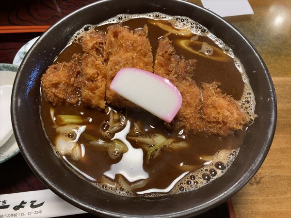 トンカツは肉厚、麺は手打ちでそこそこのコシがある。おかずのトンカツをガリっと一口食べて主食のうどんを啜る。食べ方もありそうでない図式ながら、なかなかイケてる。ビジュアルはクドそうだか、味わいとしては むしろサッパリ感があり、これなら飽きずに食べれそうな気分になる。